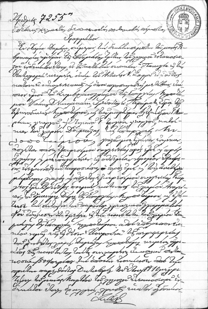 [Pièce] GRGSA-RET_NOT028.01.F000033.IT007255 Pièce #7255 [15 Φεβρουαρίου 1911] Συμβολαιογραφική πράξη. Γραμμάτιο. |