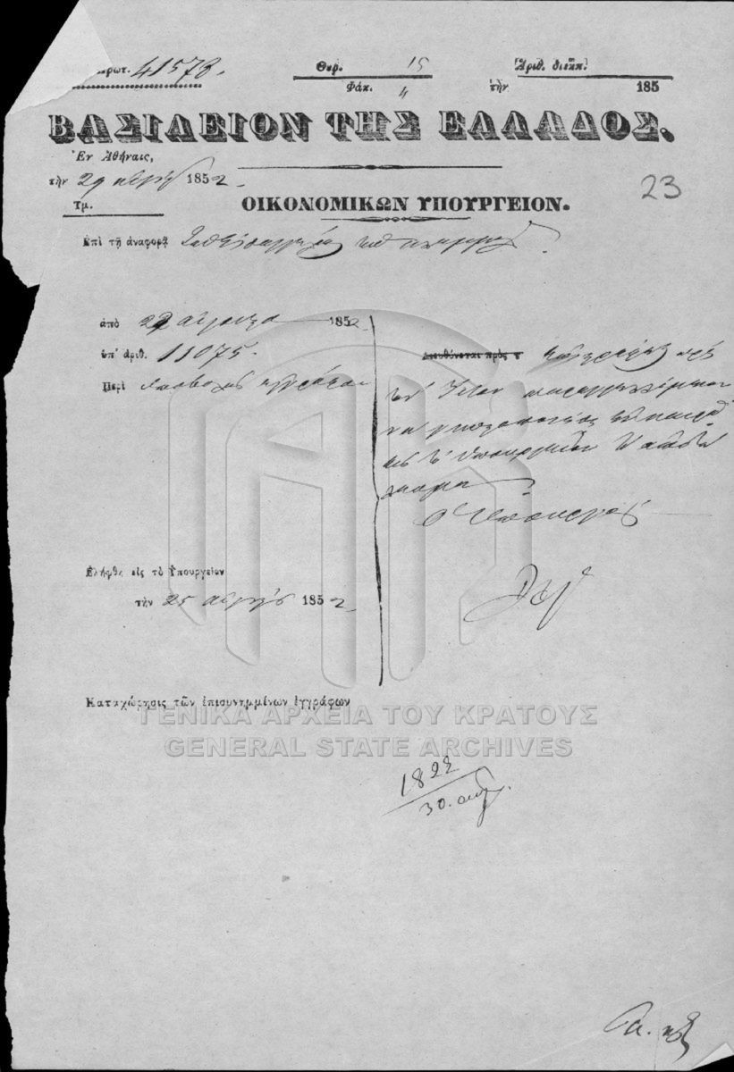 SECRETARIAT/MINISTRY OF FINANCE ARCHIVE: NATIONAL LANDS (1833-1869) - SECRETARIAT/MINISTRY OF FINANCE ARCHIVE: NATIONAL LANDS (1833-1869)  [1833 - 1869]