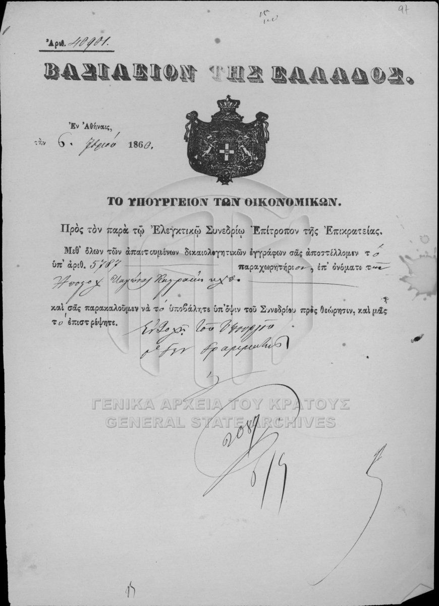 SECRETARIAT/MINISTRY OF FINANCE ARCHIVE: NATIONAL LANDS (1833-1869) - SECRETARIAT/MINISTRY OF FINANCE ARCHIVE: NATIONAL LANDS (1833-1869)  [1833 - 1869]