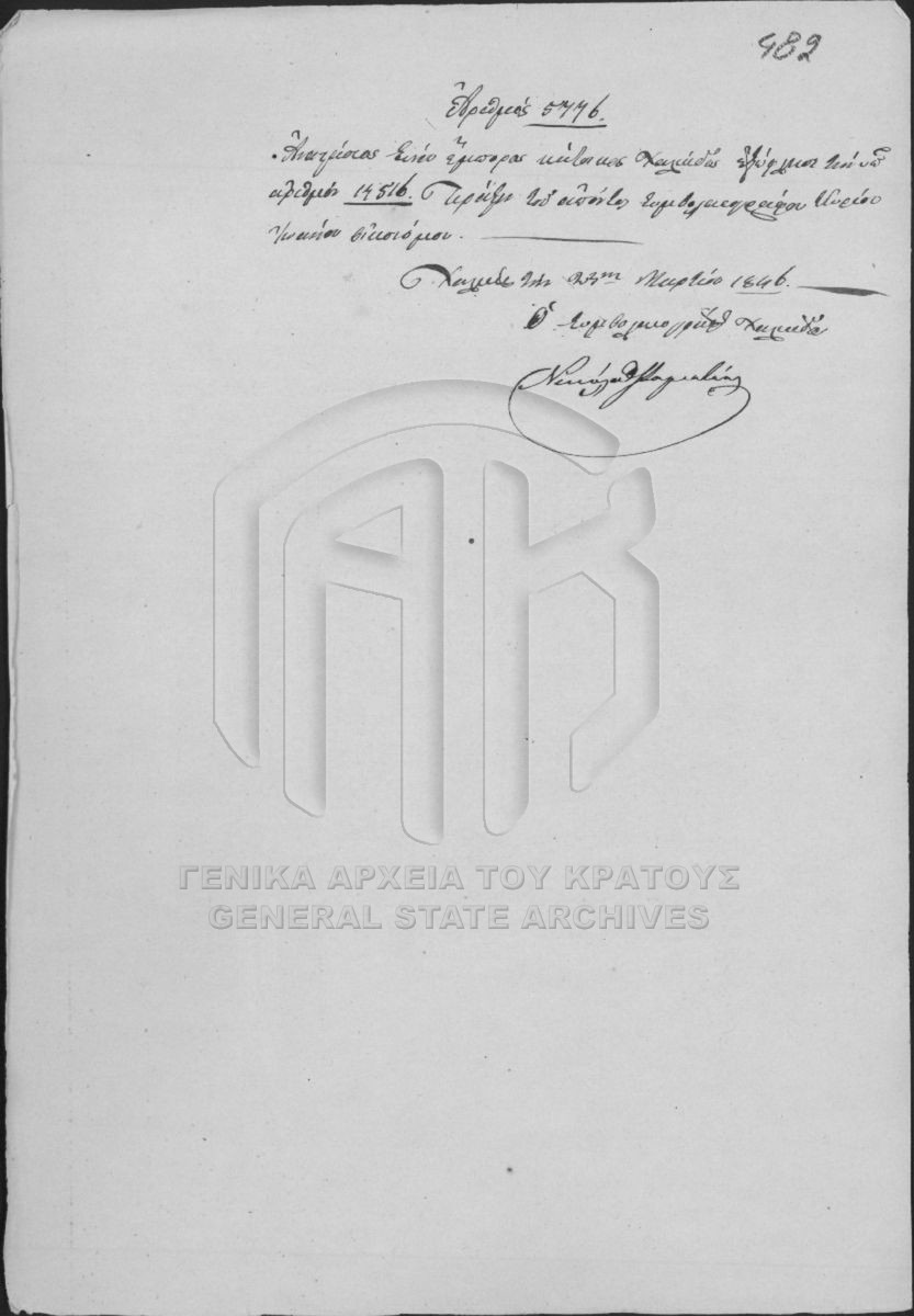 [Τεκμήριο] GRGSA-EUB_NOT002.02.01.F000019.IT005776 Τεκμήριο #5776 [23 Μαρτίου 1846] Συμβολαιογραφική πράξη. Εξόφληση της υπ' αριθμόν 14516 πράξης. |