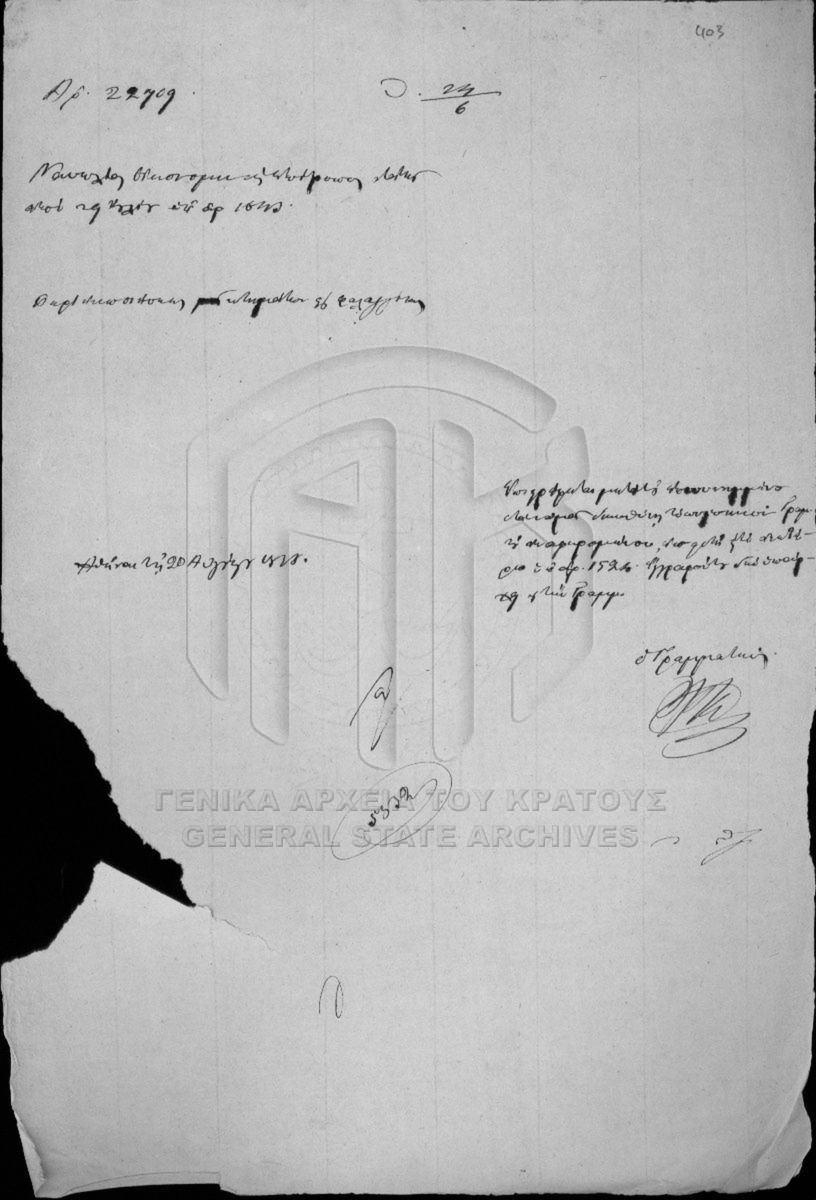 [Fonds] GRGSA-CSA_PAO005.01 SECRETARIAT/MINISTRY OF FINANCE ARCHIVE: NATIONAL LANDS (1833-1869) - SECRETARIAT/MINISTRY OF FINANCE ARCHIVE: NATIONAL LANDS (1833-1869) [1833 - 1869] Το αρχειακό σύνολο «Εθνικά Κτήματα» αποτελεί τμήμα του αρχείου της Κεντρικής Υπηρεσίας του Υπουργείου Οικονομικών και περιλαμβάνει τεκμήρ... |