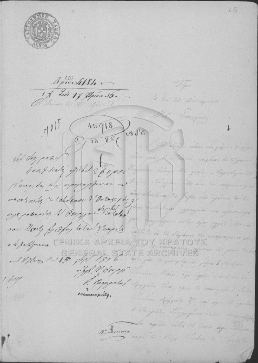 [Fonds] GRGSA-CSA_PAO005.01 SECRETARIAT/MINISTRY OF FINANCE ARCHIVE: NATIONAL LANDS (1833-1869) - SECRETARIAT/MINISTRY OF FINANCE ARCHIVE: NATIONAL LANDS (1833-1869) [1833 - 1869] Το αρχειακό σύνολο «Εθνικά Κτήματα» αποτελεί τμήμα του αρχείου της Κεντρικής Υπηρεσίας του Υπουργείου Οικονομικών και περιλαμβάνει τεκμήρ... |