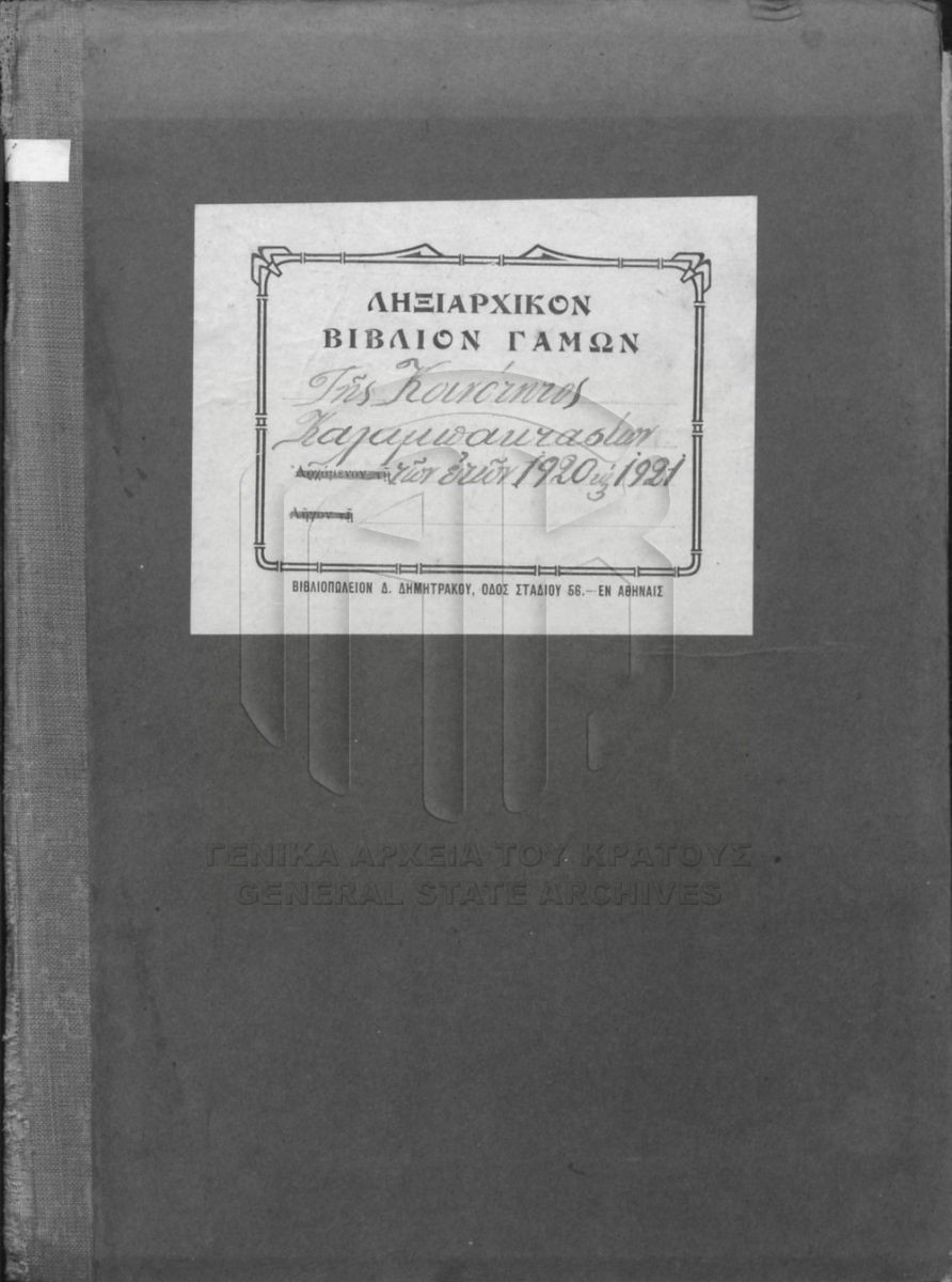[Φάκελος] GRGSA-SAM_REG008.01.F000065 Φάκελος #065 [1920 - 1921] Ληξιαρχικό βιβλίο γάμων της κοινότητας Καλαμπακτασίων. |