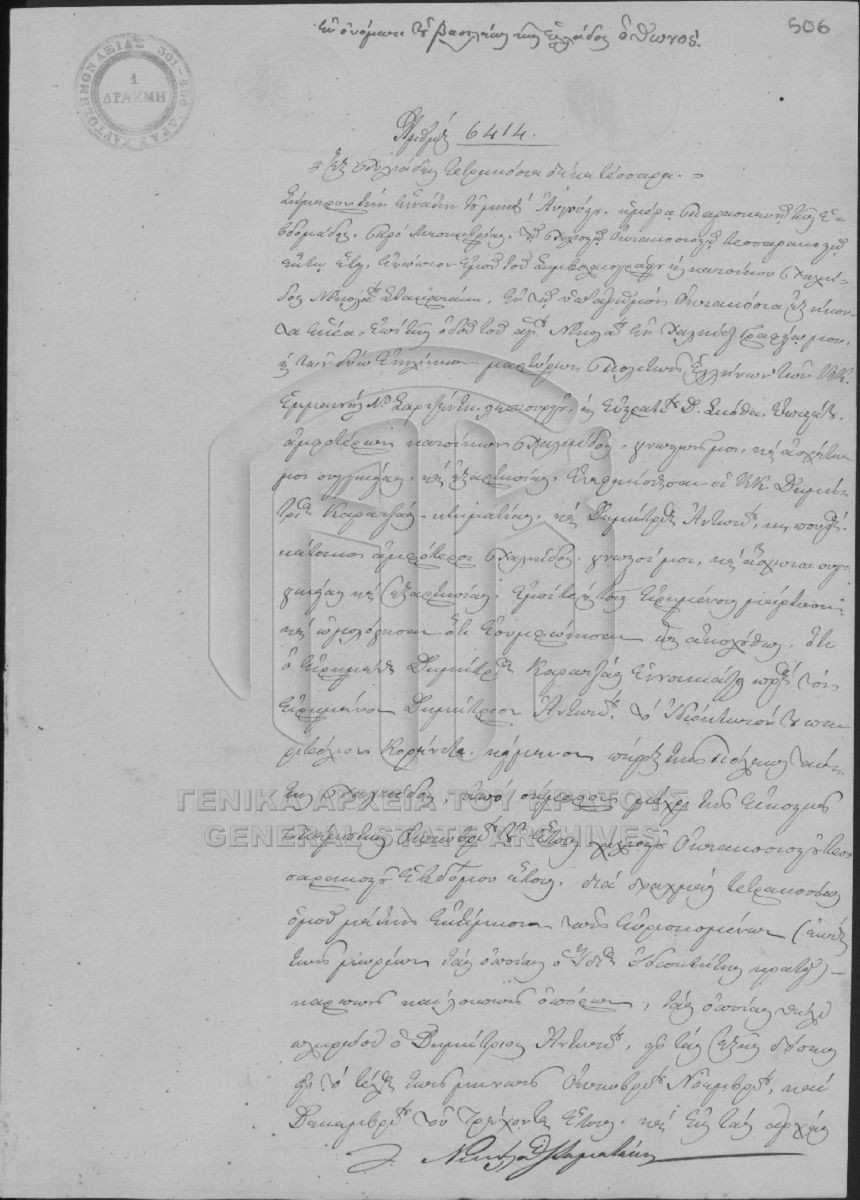 [Τεκμήριο] GRGSA-EUB_NOT002.02.01.F000021.IT006414 Τεκμήριο #6414 [9 Αυγούστου 1846] Συμβολαιογραφική πράξη. |