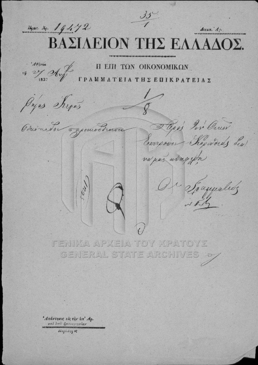 SECRETARIAT/MINISTRY OF FINANCE ARCHIVE: NATIONAL LANDS (1833-1869) - SECRETARIAT/MINISTRY OF FINANCE ARCHIVE: NATIONAL LANDS (1833-1869)  [1833 - 1869]