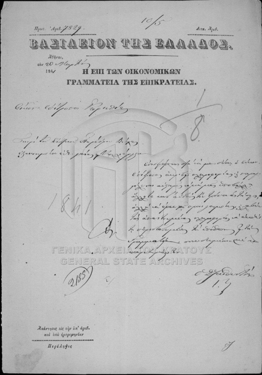 SECRETARIAT/MINISTRY OF FINANCE ARCHIVE: NATIONAL LANDS (1833-1869) - SECRETARIAT/MINISTRY OF FINANCE ARCHIVE: NATIONAL LANDS (1833-1869)  [1833 - 1869]