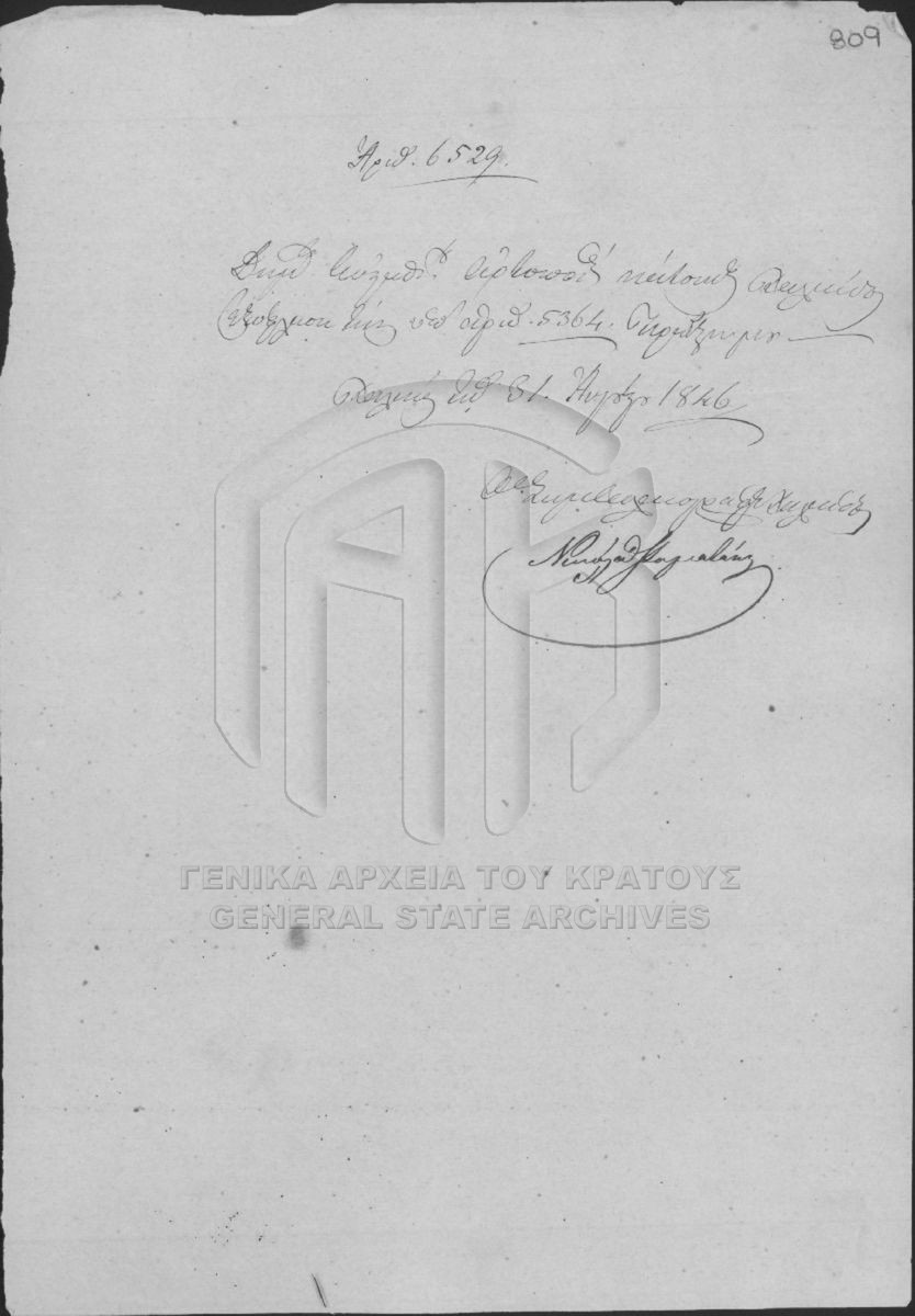[Item] GRGSA-EUB_NOT002.02.01.F000021.IT006529 Item #6529 [31 Αυγούστου 1846] Συμβολαιογραφική πράξη. Εξόφληση της υπ' αριθμόν 5364 πράξης. |