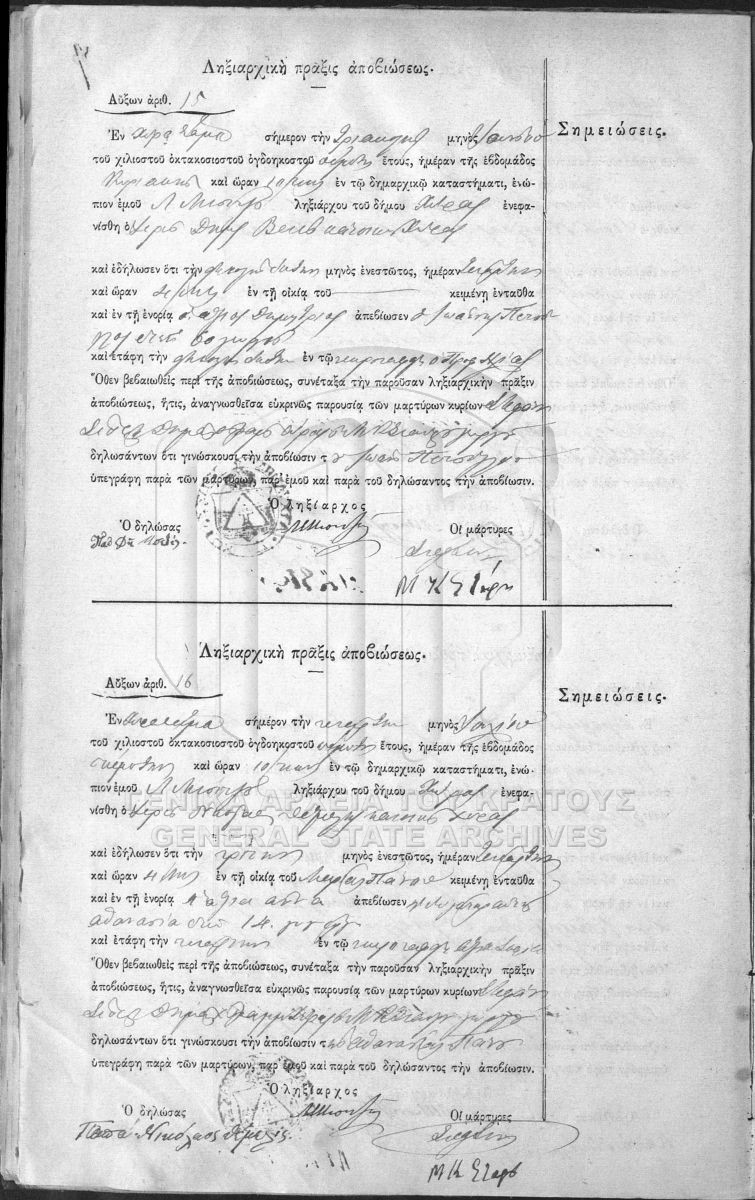 [Fonds] GRGSA-SAM_REG037 ΛΗΞΙΑΡΧΙΚΑ [1855 - 1932] Contenu: Ληξιαρχικό βιβλίο του Δήμου Χώρας. Ληξιαρχικά βιβλία του Δήμου Χώρας. Ληξιαρχικό βιβλίο του Δήμου Χώρας Ληξιαρχικό βιβλί... |