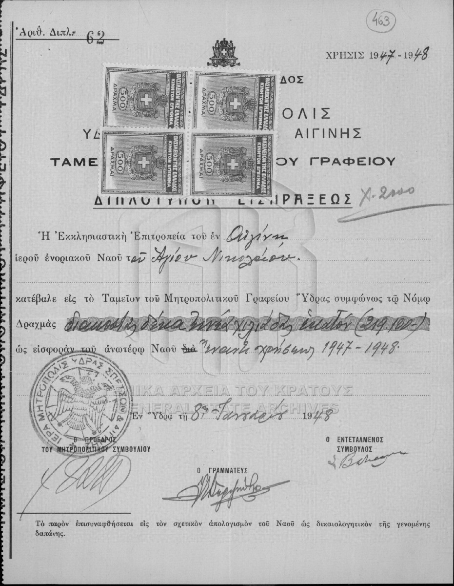 Ι.Μ. ΥΔΡΑΣ, ΣΠΕΤΣΩΝ, ΑΙΓΙΝΗΣ  [1854 - 1971]