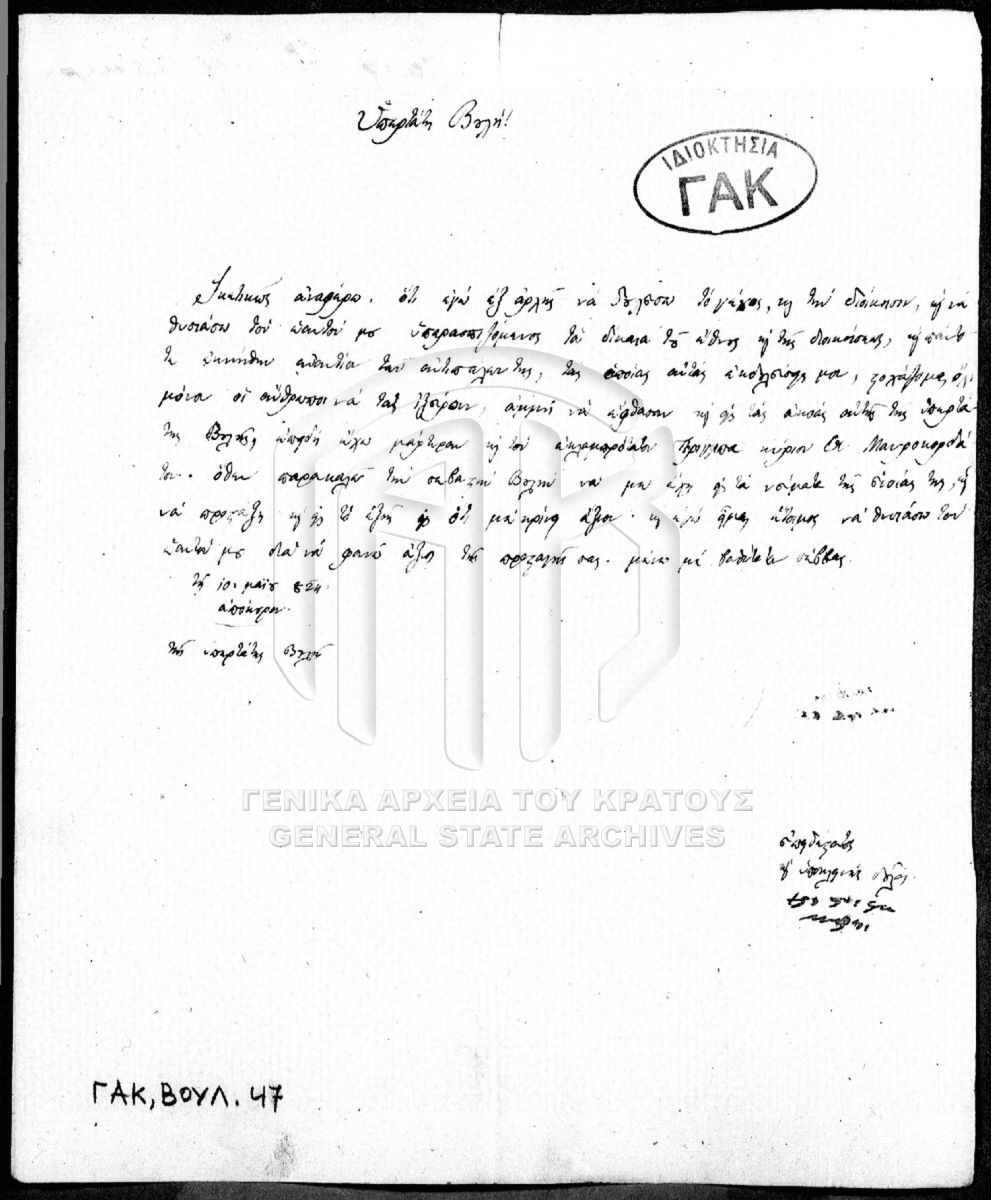 Small Branches of the archive of the War of Independence period and the I. Kapodistrias governing period - Small Branches of the archive of the War of Independence period and the I. Kapodistrias governing period   [1822 - 1828]