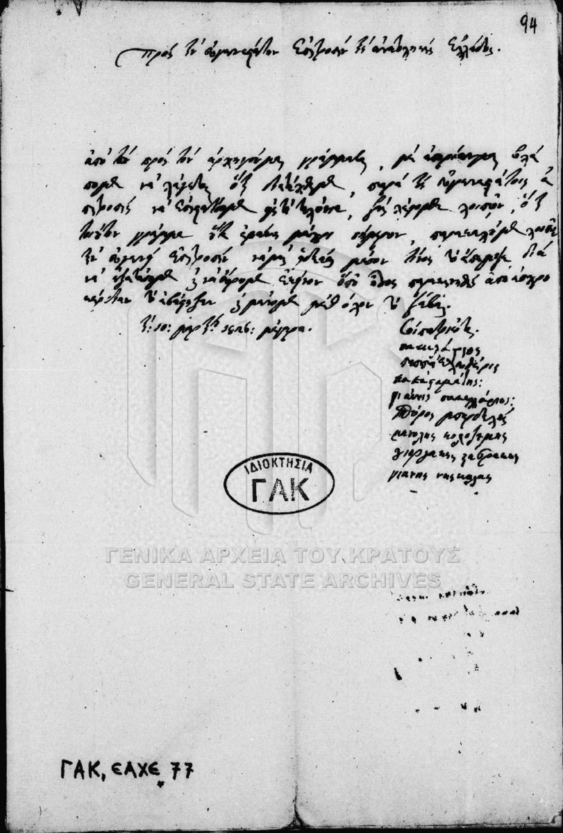Υπηρεσιακή αλληλογραφία, επιστολές, διακηρύξεις, διατάγματα, κατάλογοι, καταστάσεις λογαριασμών, δηλώσεις, καταστάσεις ελέγχου στρατευμάτ...