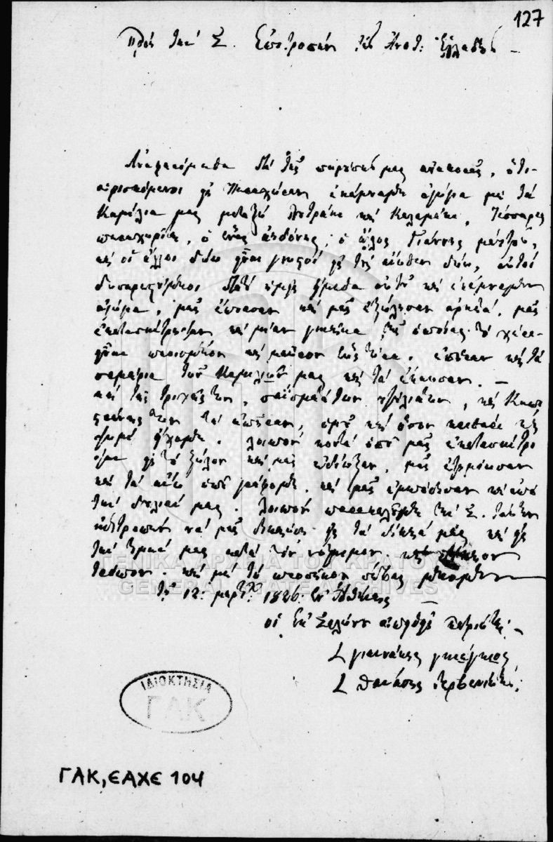 Υπηρεσιακή αλληλογραφία, επιστολές, διακηρύξεις, διατάγματα, κατάλογοι, καταστάσεις λογαριασμών, δηλώσεις, καταστάσεις ελέγχου στρατευμάτ...