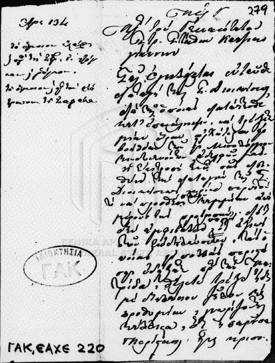 Υπηρεσιακή αλληλογραφία, επιστολές, διακηρύξεις, διατάγματα, κατάλογοι, καταστάσεις λογαριασμών, δηλώσεις, καταστάσεις ελέγχου στρατευμάτ...