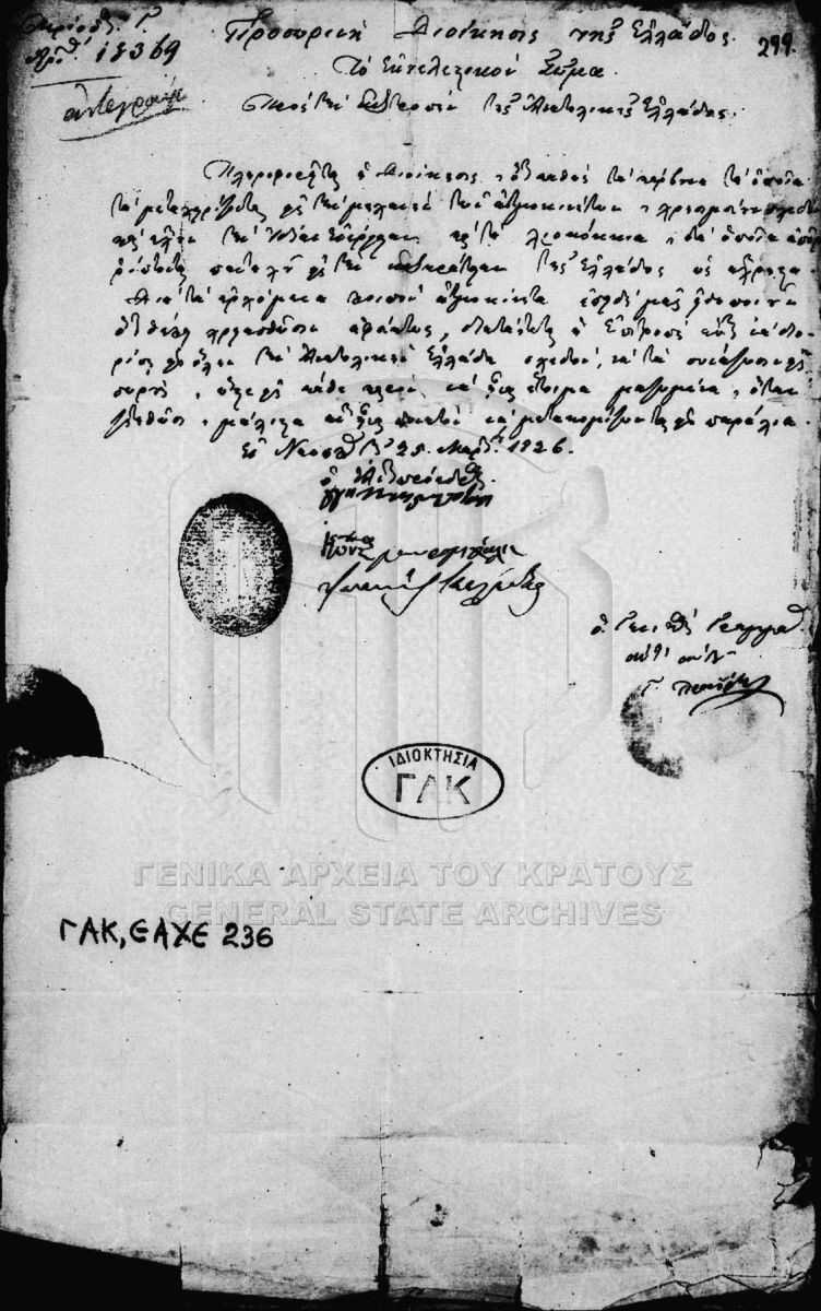 [Fonds] GRGSA-CSA_PAM011.00 Small Branches of the archive of the War of Independence period and the I. Kapodistrias governing period - Small Branches of the archive of the War of Independence period and the I. Kapodistrias governing period [1822 - 1828] Περιέχει έγγραφα σχετικά με το/τη/τα: • Βουλευτικόν • Γερουσία της Δυτικής Χέρσου Ελλάδος • Γερουσία Πελοποννησιακή • Γραμματεία των Εξωτ... |
