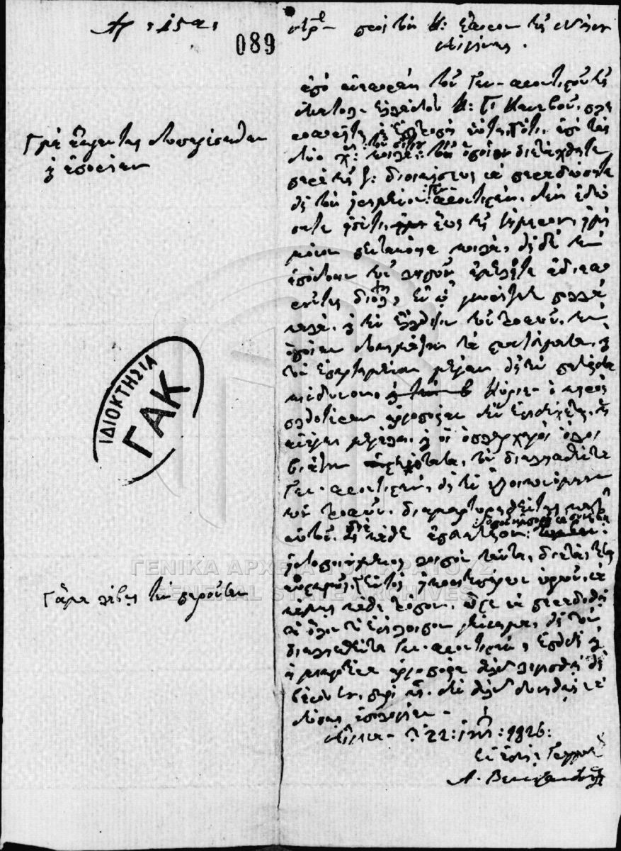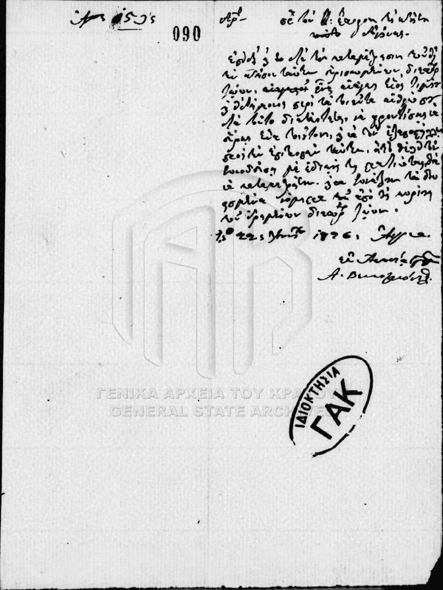 [Fonds] GRGSA-CSA_PAM011.00 Μικροί Κλάδοι αρχείου Αγώνος και Καποδιστρίου [1822 - 1828] Περιέχει έγγραφα σχετικά με το/τη/τα: • Βουλευτικόν • Γερουσία της Δυτικής Χέρσου Ελλάδος • Γερουσία Πελοποννησιακή • Γραμματεία των Εξωτ... |