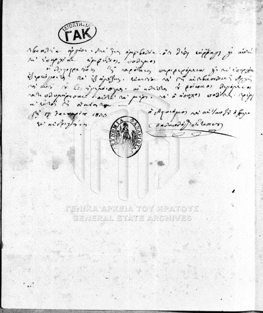 Φάκελος #257 - "Αρχείο Ρήγα Παλαμήδη, Μετεπαναστατικά"  [1833 – 1839]