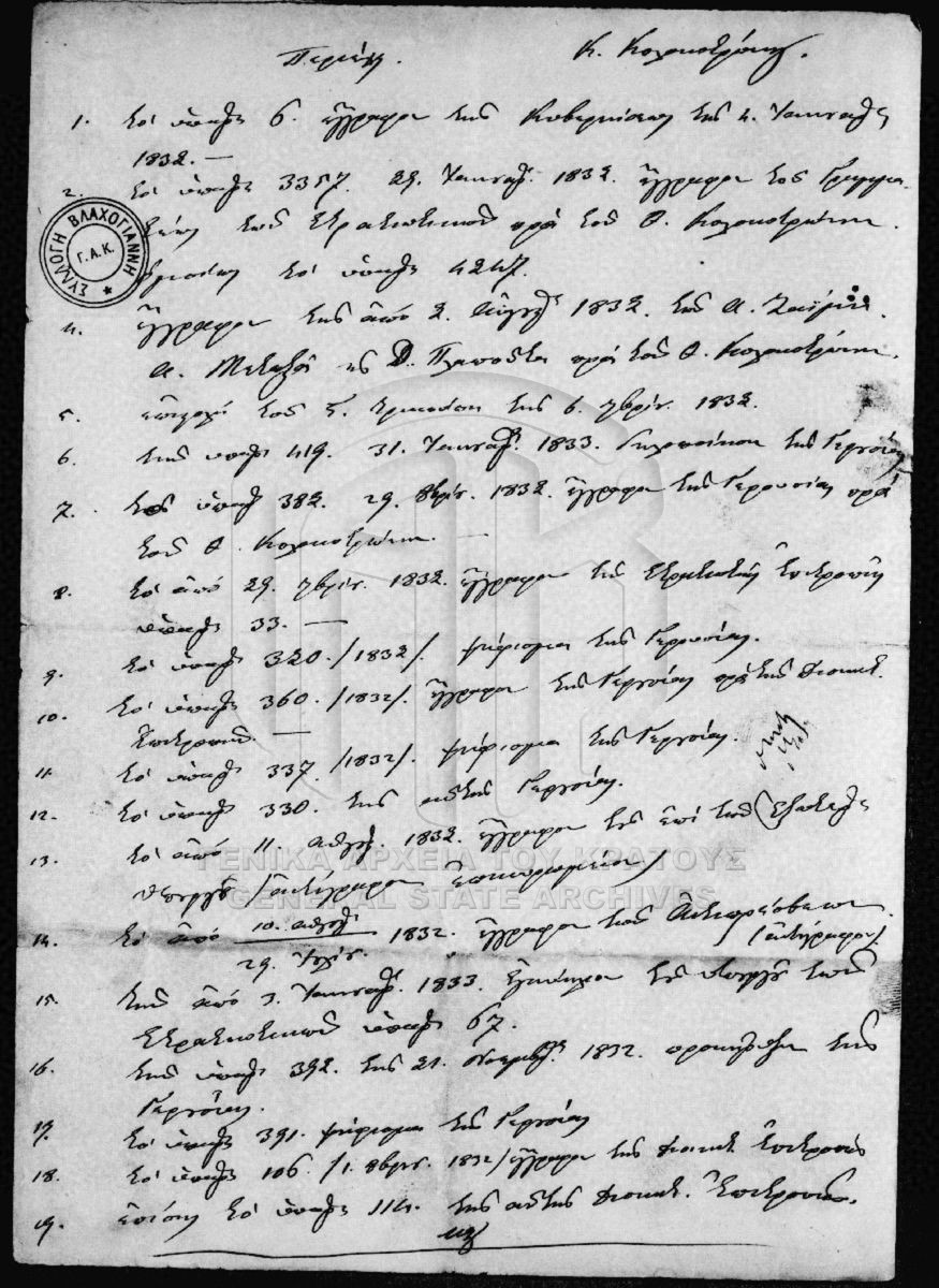 [Fonds] GRGSA-CSA_PCVLA.AA Συλλογή Γιάννη Βλαχογιάννη [1600 - 1950] Η Συλλογή Γιάννη Βλαχογιάννη περιέχει έξι καταλόγους: -Κατάλογος Α' (Αρχείον Αγώνος, Αρχείον Καποδιστριακής περιόδου, Αρχείον περιόδου Όθ... |