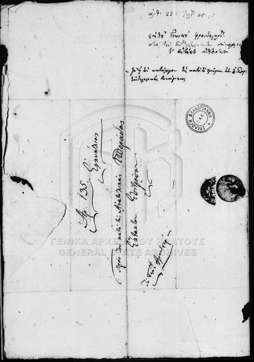 Περιέχει αλληλογραφία των Δημογερόντων των Βουρλιωτών προς τον Ιωάννη Κωλέττη, της επί της Οικονομίας Επιτροπής, του Κυβερνήτη της Ελλάδ...