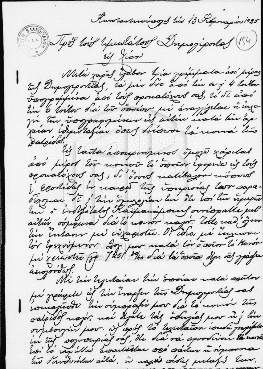 Περιέχει αλληλογραφία του Ιωάννη Ψυχάρη προς τους Δημογέροντες της Χίου.