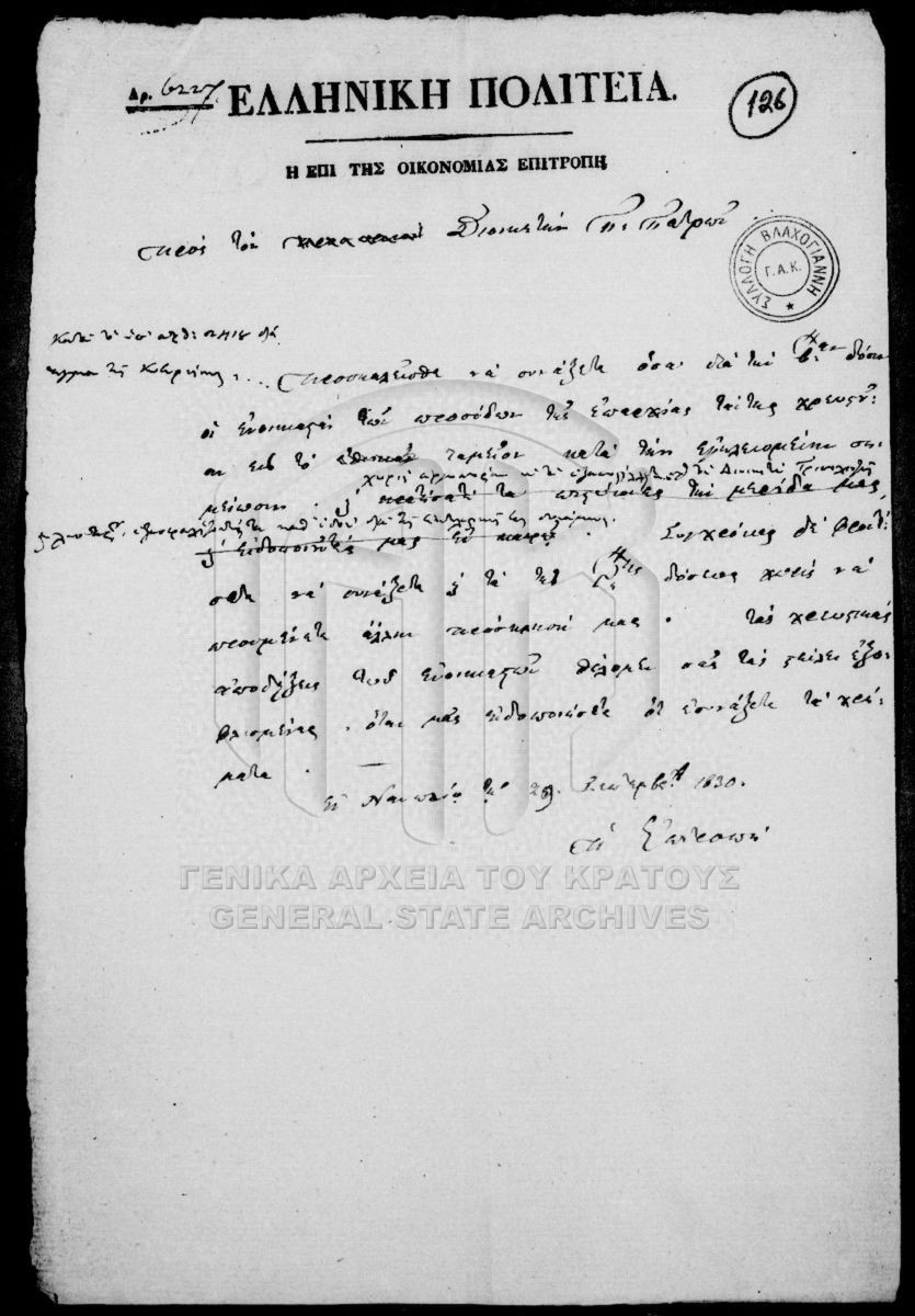 [File] GRGSA-CSA_PCVLA.AA.S01.SS02.F000114 File #114 - "Επιτροπή οικονομίας" [Ιανουάριος - Σεπτέμβριος 1830] Περιέχει αλληλογραφία προς την επί της Οικονομίας Επιτροπή, του υγειονολιμεναρχείου Μεσολογγίου, του Κυβερνήτη της Ελλάδος, του κατά την ... |