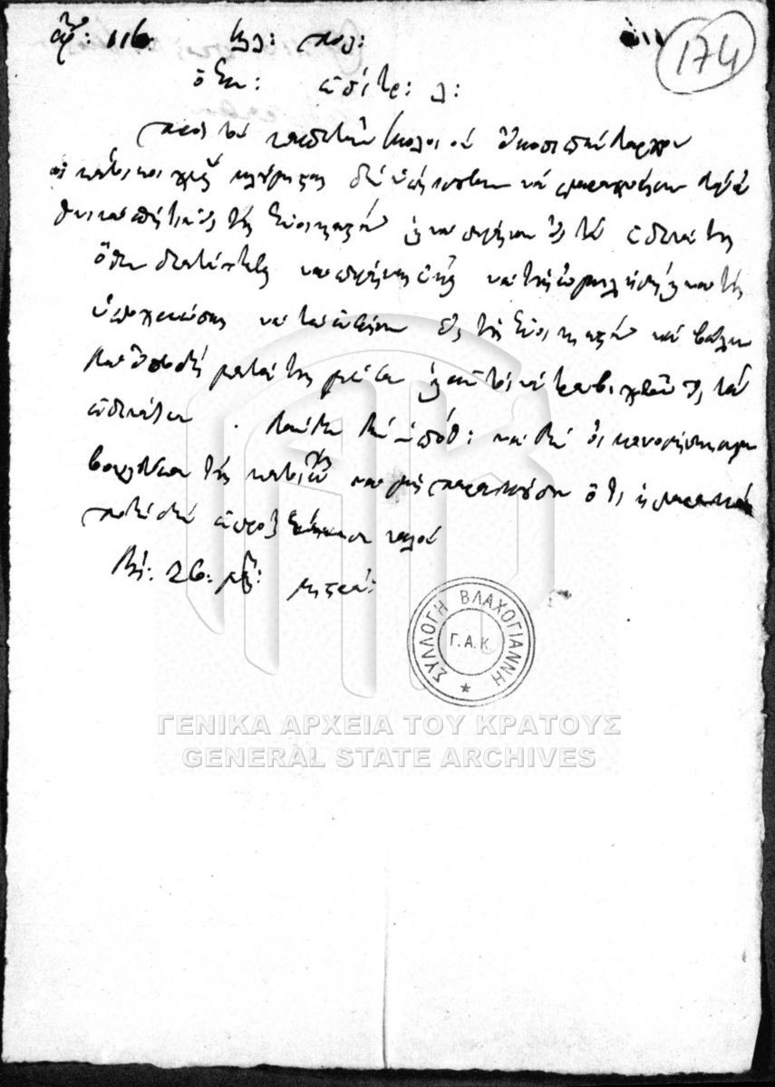 [Fichier] GRGSA-CSA_PCVLA.AA.S01.SS02.F000123 Fichier #123 - "Έκτακτοι Επίτροποι και Προσωρινοί Διοικηταί" [Μάρτιος - Μάϊος 1828] Περιέχει αλληλογραφία από και προς τον Προσωρινό Διοικητή της επαρχίας της πόλεως Ναυπλίου, την Αστυνομία Ναυπλίου, του Κυβερνήτη της Ελλ... |