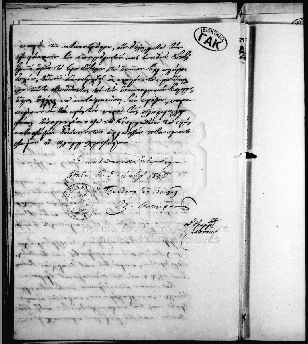 Περιέχει αλληλογραφία προς το Προεδρείο της Γερουσίας και τη Βουλή, τον πρόεδρο της Γερουσίας, της Εθνικής Τράπεζας της Ελλάδος (μέρισμα ...