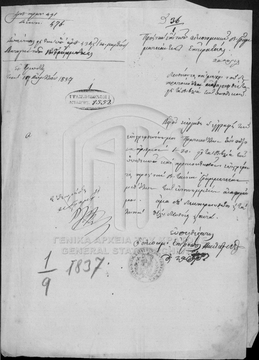 File #219 - SECRETARIAT/MINISTRY OF FINANCE ARCHIVE: NATIONAL LANDS (1833-1869)  [1837]