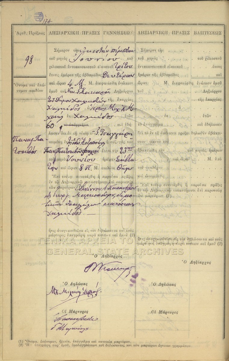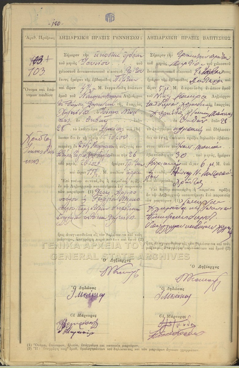 Βιβλία ληξιαρχικών πράξεων γέννησης - βάπτισης - νόθων / Βιβλία εκθέσεων βάπτισης - υιοθεσίας