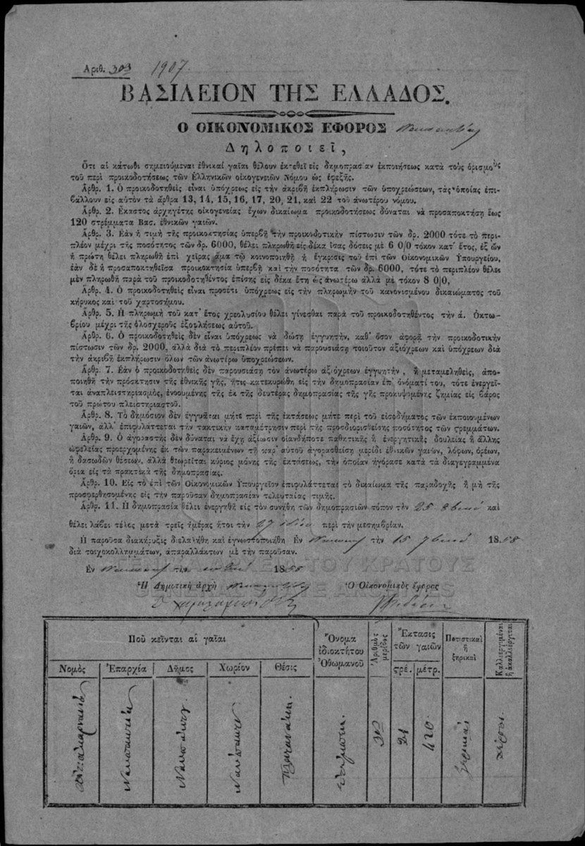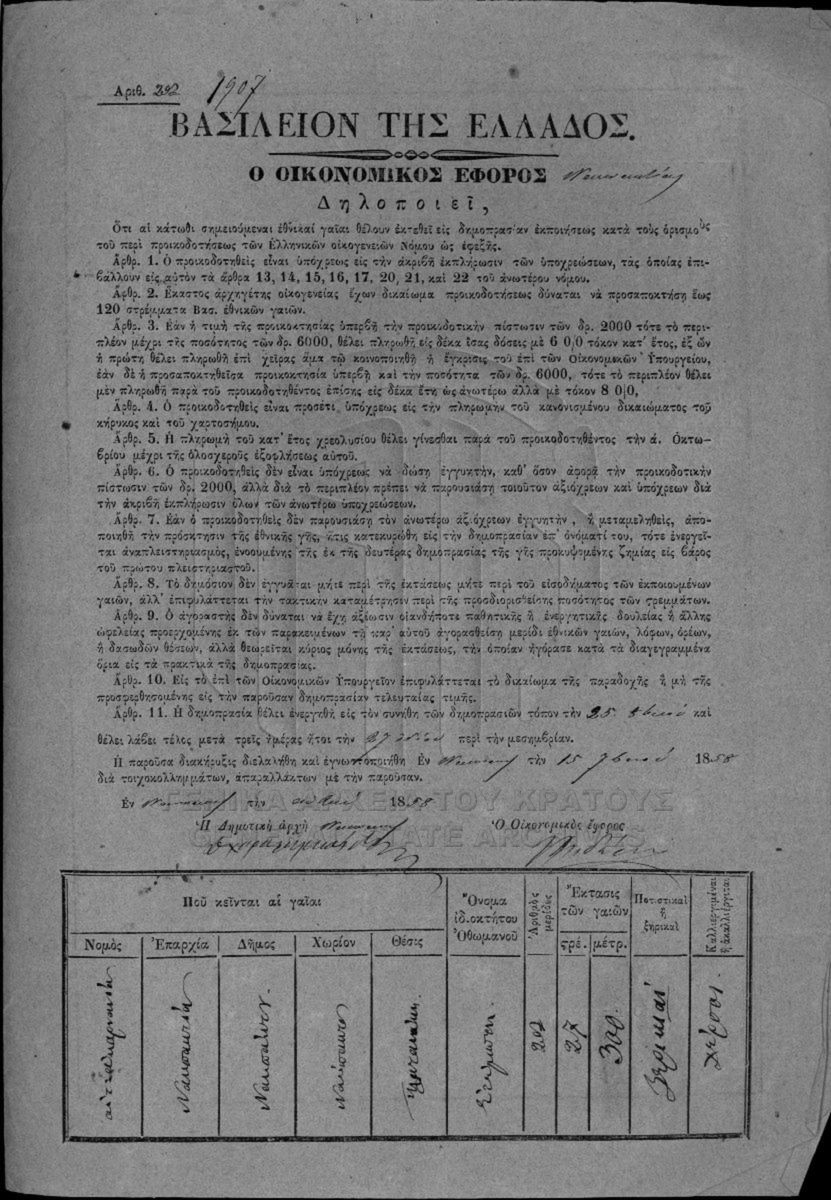 Political endowments - Military and naval endowments - Auctioning of national perishable estates. Etoloakarnania Prefecture. Nafpaktia pr...