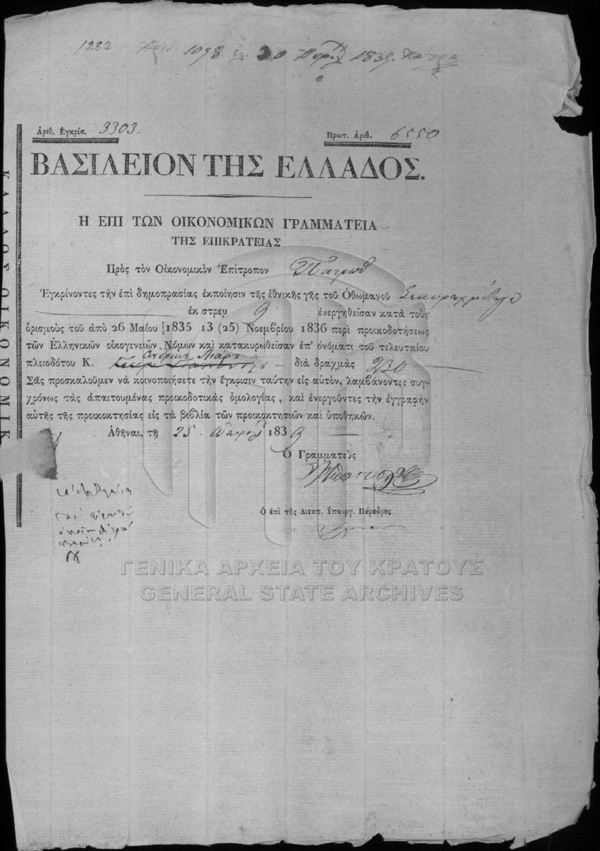 Αρχείο Εθνικών Κτημάτων  [1833 - 1869]