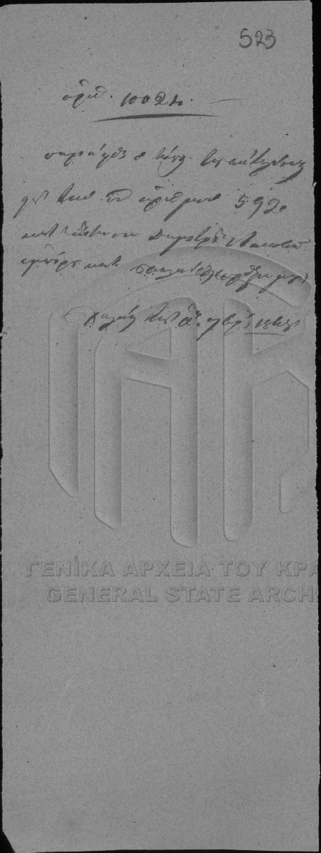 [Pièce] GRGSA-EUB_NOT002.02.01.F000032.IT010024 Pièce #10024 [1 Σεπτεμβρίου 1848] Συμβολαιογραφική πράξη. Εκτέλεση της υπ' αριθμόν 5920 πράξης. |