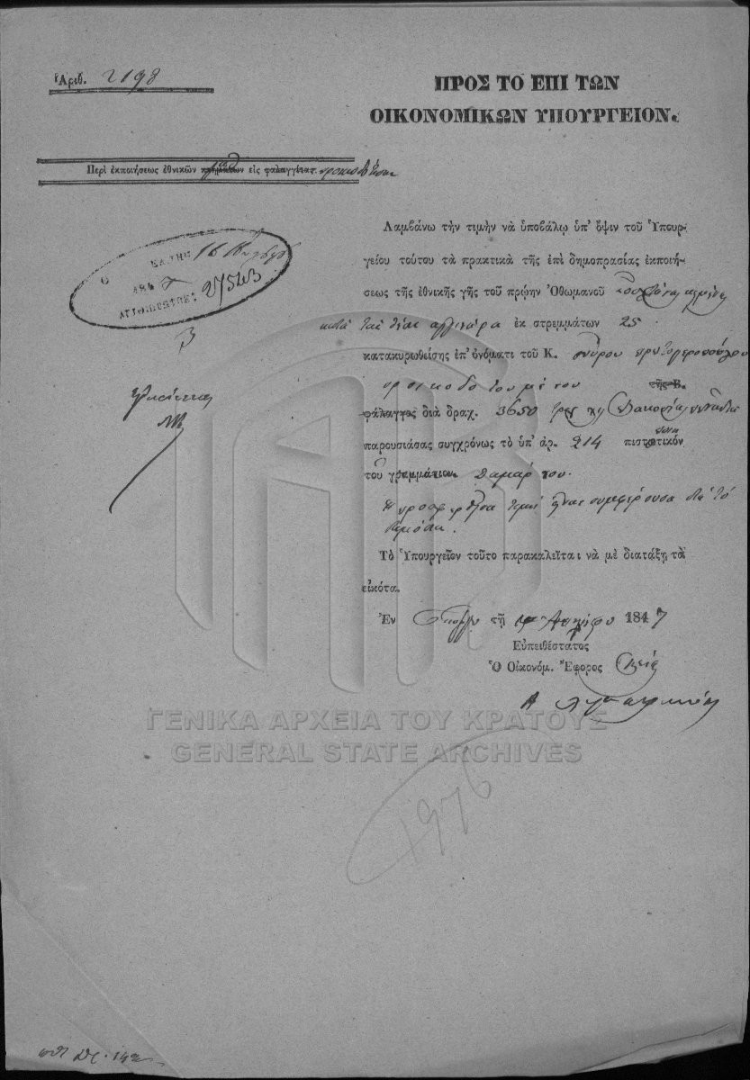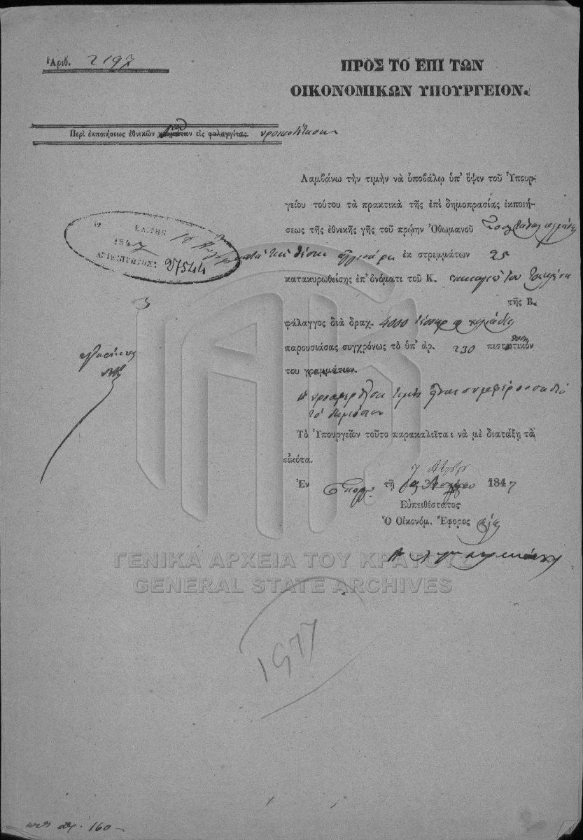 Το αρχειακό σύνολο «Εθνικά Κτήματα» αποτελεί τμήμα του αρχείου της Κεντρικής Υπηρεσίας του Υπουργείου Οικονομικών και περιλαμβάνει τεκμήρ...