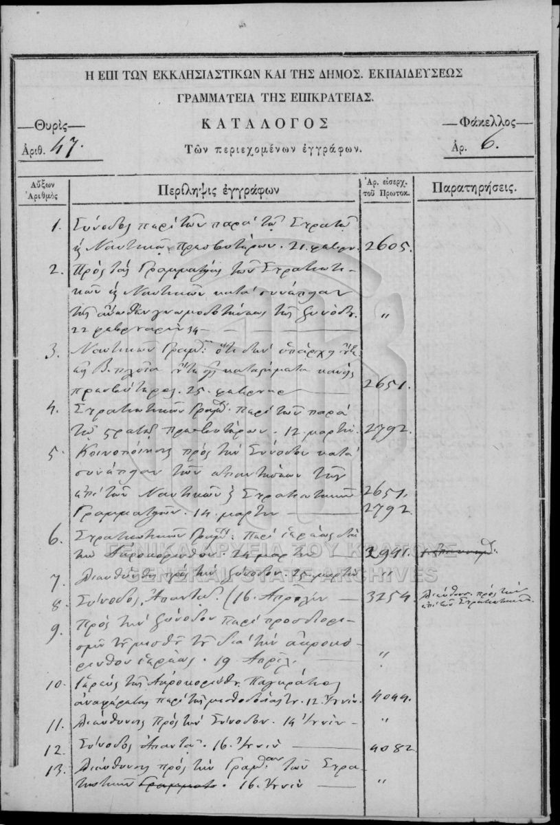 [Αρχείο] GRGSA-CSA_PAO013 Αρχείο Γραμματείας / Υπουργείου Εκκλησιαστικών και Δημοσίου Εκπαιδεύσεως [1833 - 1848] Το αρχείο της Γραμματείας επί των Εκκλησιαστικών και της Δημοσίου Εκπαιδεύσεως διαρθρώνεται σε τρεις σειρές ως εξής: Ι. Σειρά των Εκκλη... |