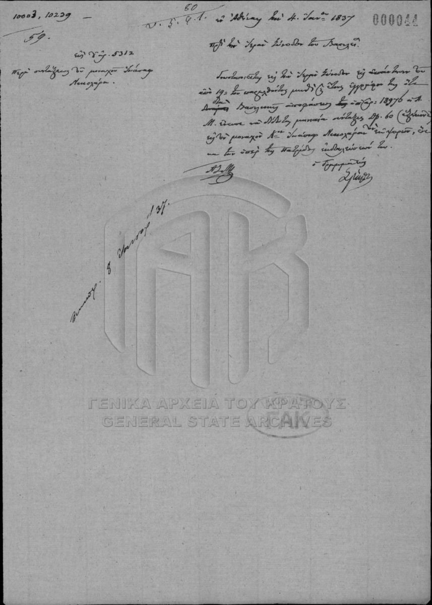 [Fonds] GRGSA-CSA_PAO013 ARCHIVES DE LA CHANCELLERIE/DU MINISTERE DES CULTES ET DE L'EDUCATION PUBLIQUE (1833-1848) - ARCHIVES DE LA CHANCELLERIE/DU MINISTERE DES CULTES ET DE L'EDUCATION PUBLIQUE (1833-1848) [1833 - 1848] Το αρχείο της Γραμματείας επί των Εκκλησιαστικών και της Δημοσίου Εκπαιδεύσεως διαρθρώνεται σε τρεις σειρές ως εξής: Ι. Σειρά των Εκκλη... |