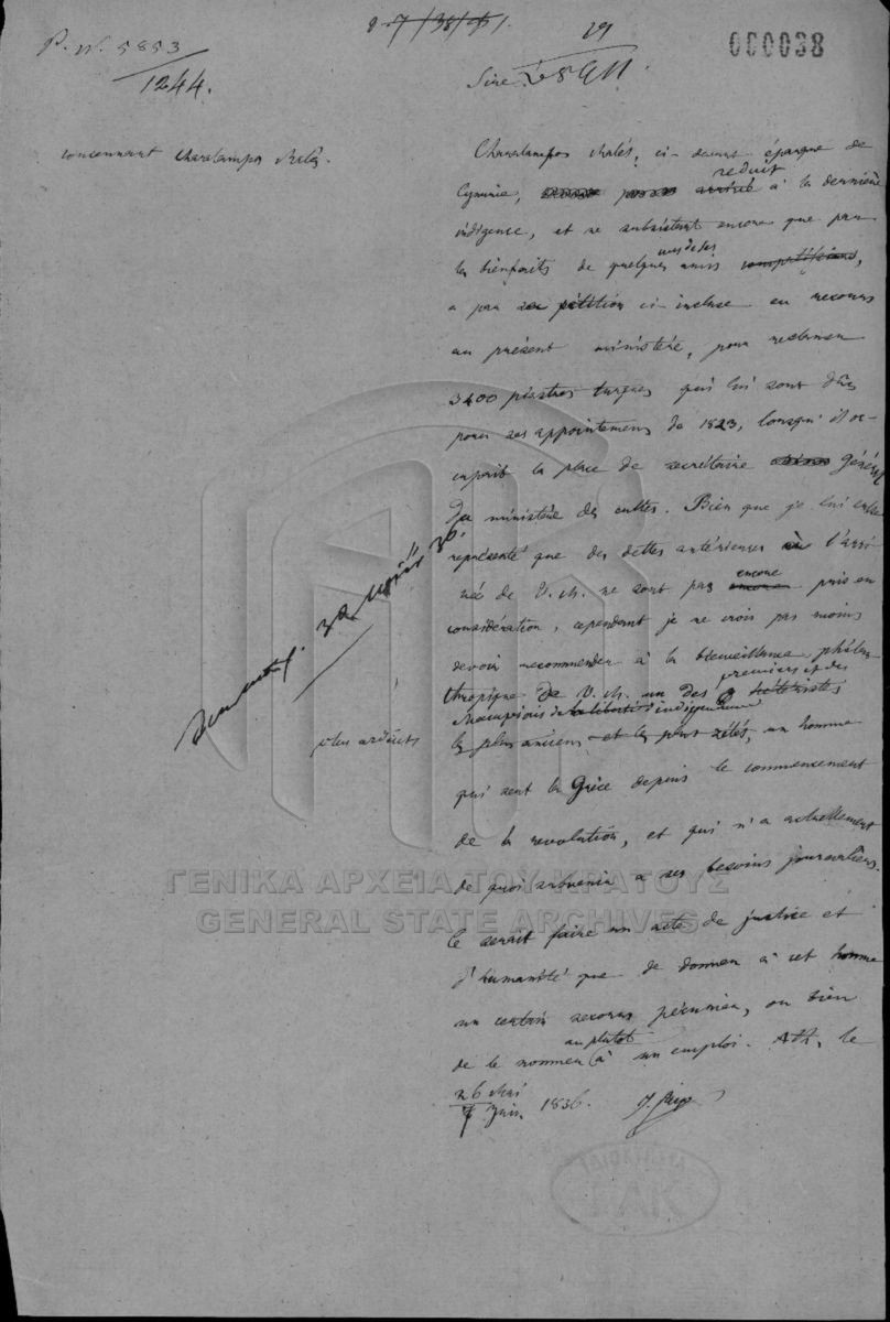 ARCHIVES DE LA CHANCELLERIE/DU MINISTERE DES CULTES ET DE L'EDUCATION PUBLIQUE (1833-1848) - ARCHIVES DE LA CHANCELLERIE/DU MINISTERE DES CULTES ET DE L'EDUCATION PUBLIQUE (1833-1848)  [1833 - 1848]