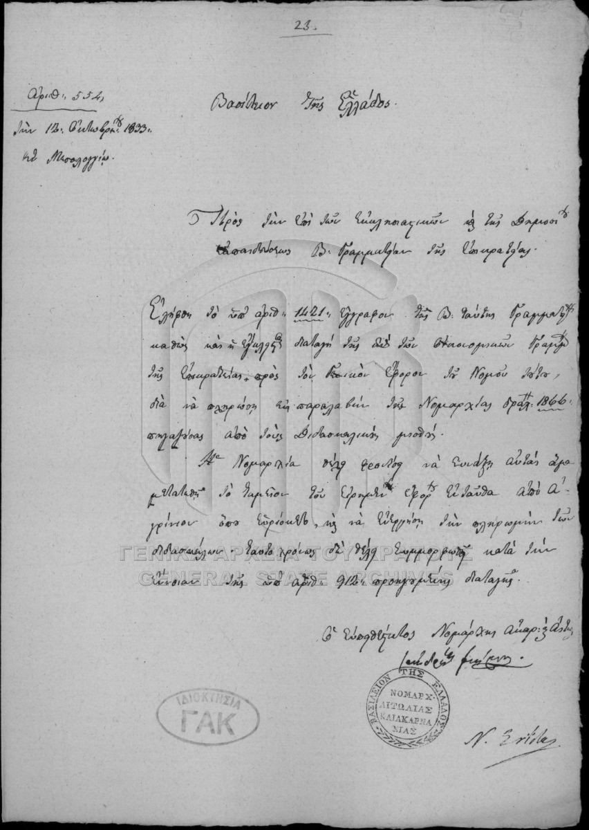 Φάκελος #1419 - Γενικά των Σχολείων  [1833 - 1834]