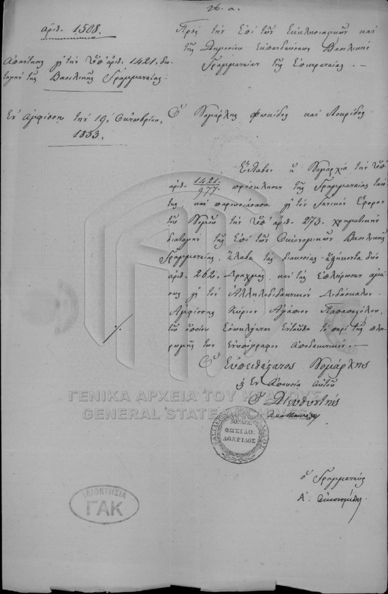 Αρχείο Γραμματείας / Υπουργείου Εκκλησιαστικών και Δημοσίου Εκπαιδεύσεως  [1833 - 1848]