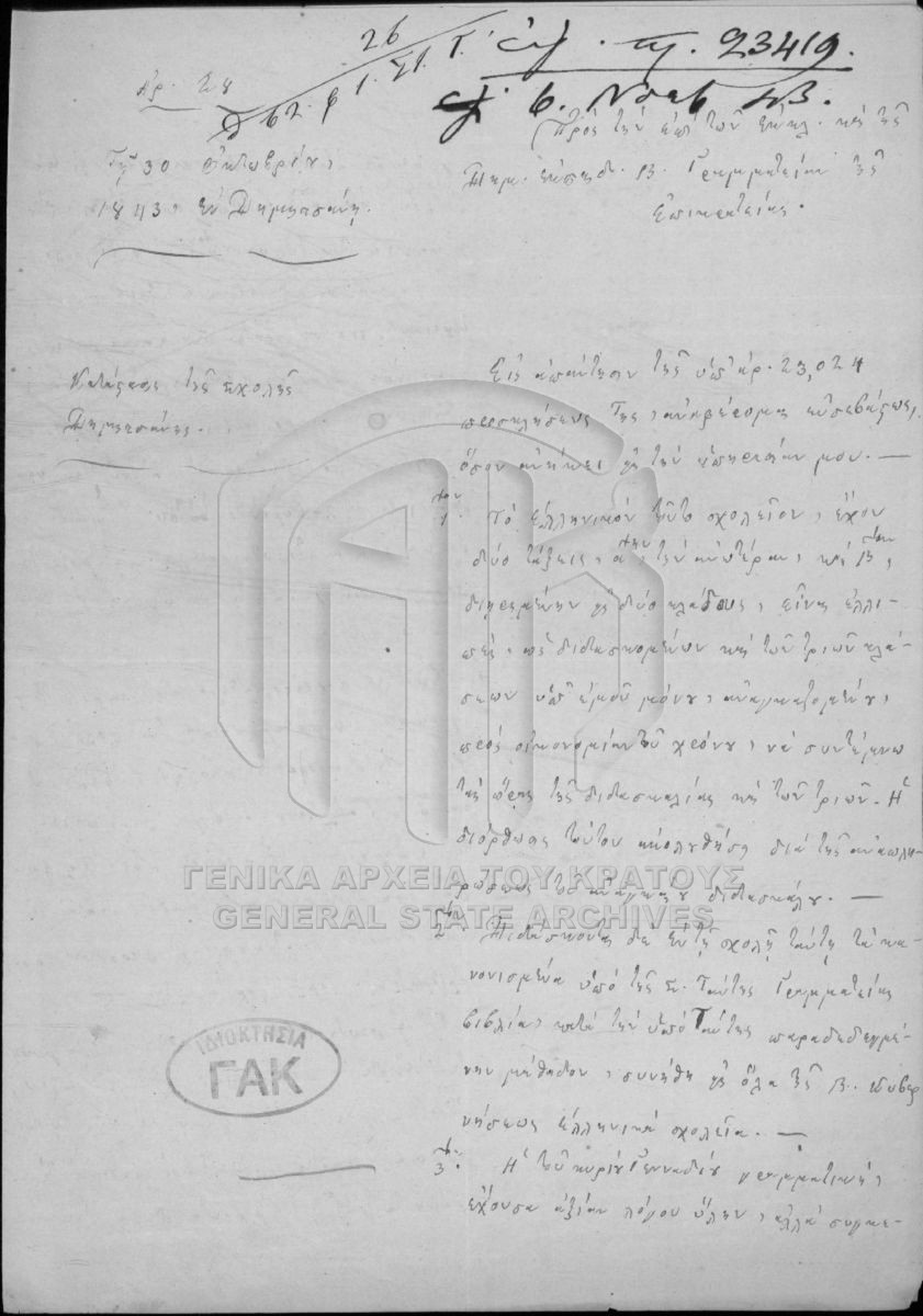 General issues concerning the Gymnasia and State Greek Schools and their staff. Staff. Libraries. List. Staff salaries.