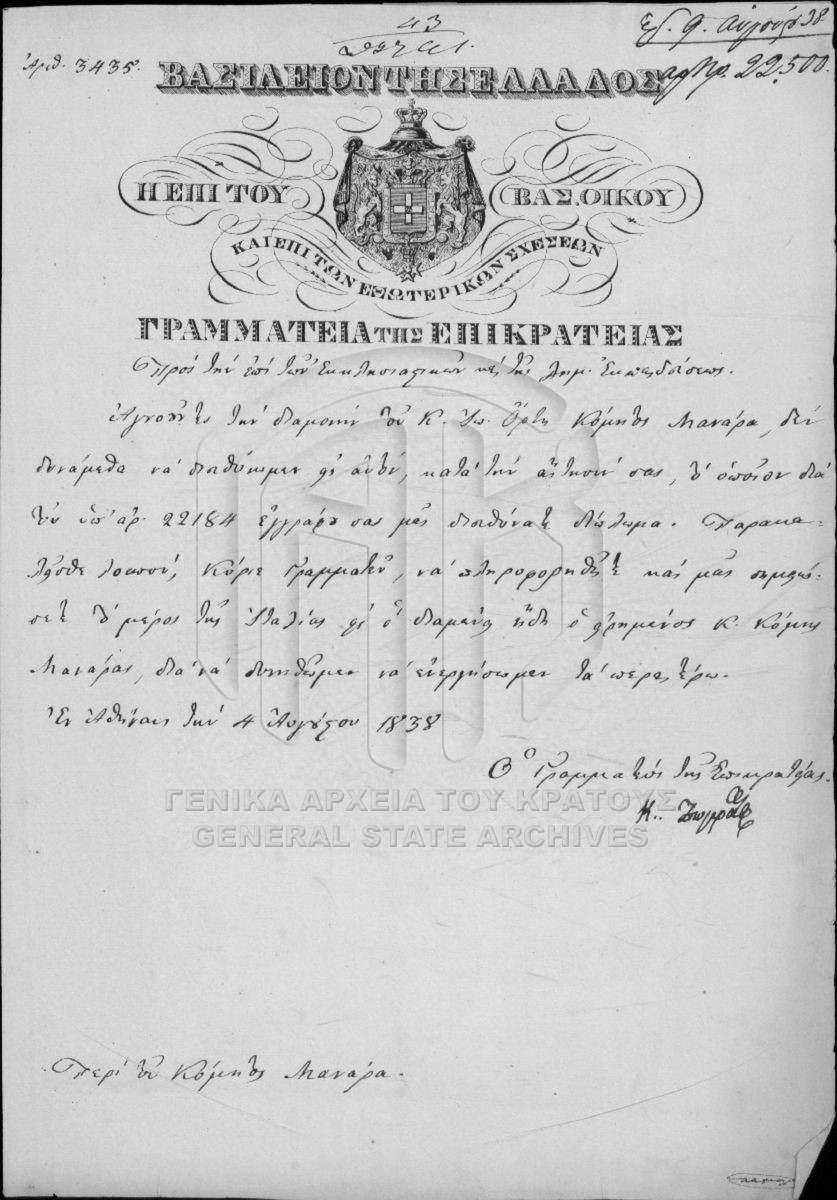 Αρχείο Γραμματείας / Υπουργείου Εκκλησιαστικών και Δημοσίου Εκπαιδεύσεως  [1833 - 1848]