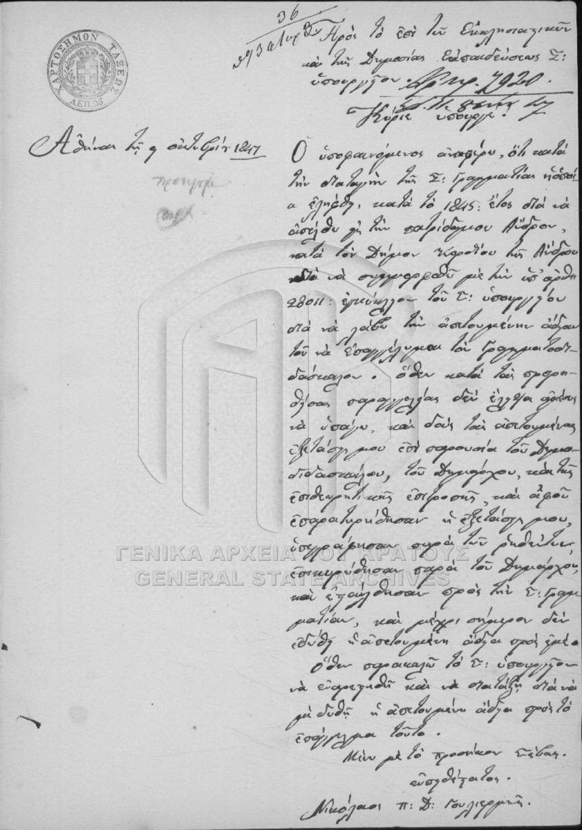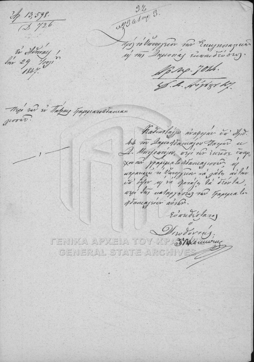[Fonds] GRGSA-CSA_PAO013 SECRETARIAT/MINISTRY OF ECCLESIASTICAL ISSUES AND STATE EDUCATION ARCHIVE (1833-1848) - SECRETARIAT/MINISTRY OF ECCLESIASTICAL ISSUES AND STATE EDUCATION ARCHIVE (1833-1848) [1833 - 1848] Το αρχείο της Γραμματείας επί των Εκκλησιαστικών και της Δημοσίου Εκπαιδεύσεως διαρθρώνεται σε τρεις σειρές ως εξής: Ι. Σειρά των Εκκλη... |