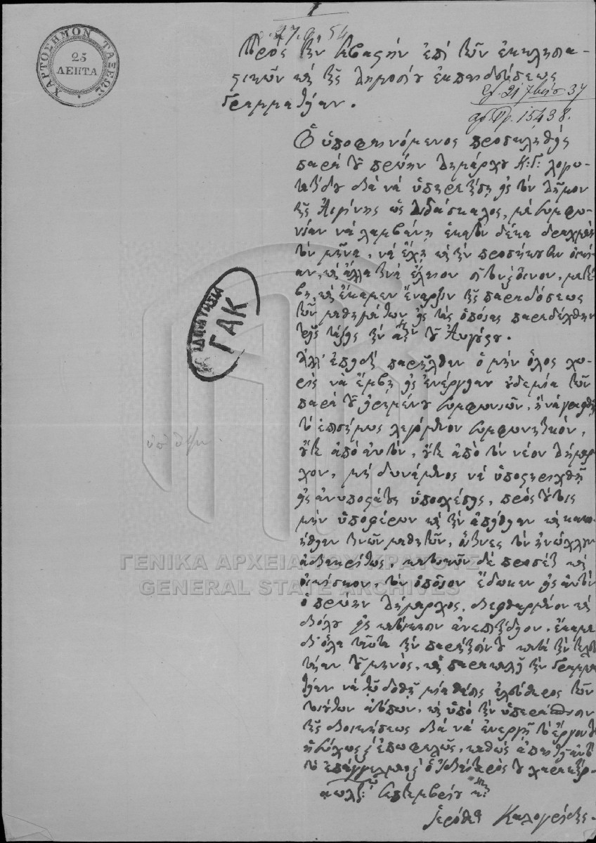 [Φάκελος] GRGSA-CSA_PAO013.S02.01.F001514 Φάκελος #1514 - Ιερόθεος Καλογρίδης [1837] |