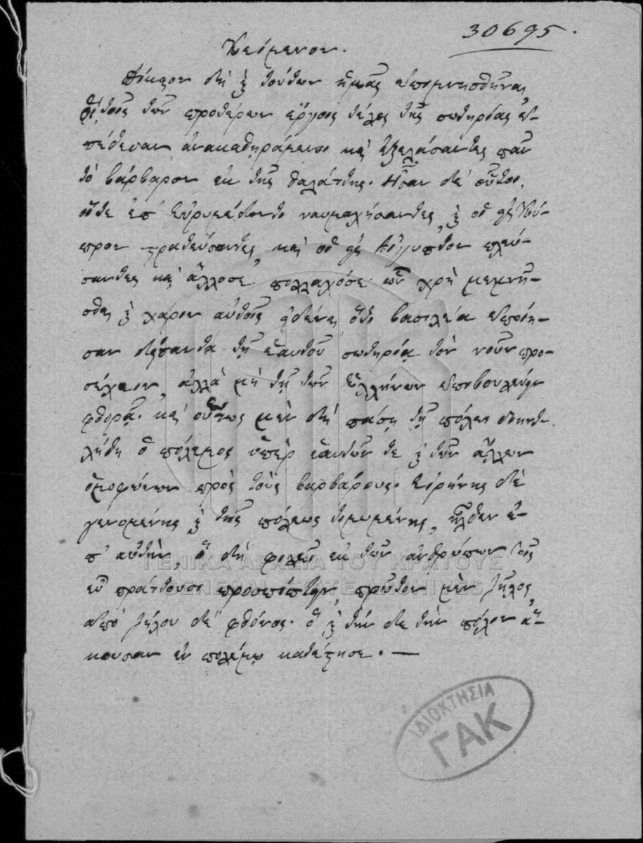 [Fonds] GRGSA-CSA_PAO013 ARCHIVES DE LA CHANCELLERIE/DU MINISTERE DES CULTES ET DE L'EDUCATION PUBLIQUE (1833-1848) - ARCHIVES DE LA CHANCELLERIE/DU MINISTERE DES CULTES ET DE L'EDUCATION PUBLIQUE (1833-1848) [1833 - 1848] Το αρχείο της Γραμματείας επί των Εκκλησιαστικών και της Δημοσίου Εκπαιδεύσεως διαρθρώνεται σε τρεις σειρές ως εξής: Ι. Σειρά των Εκκλη... |