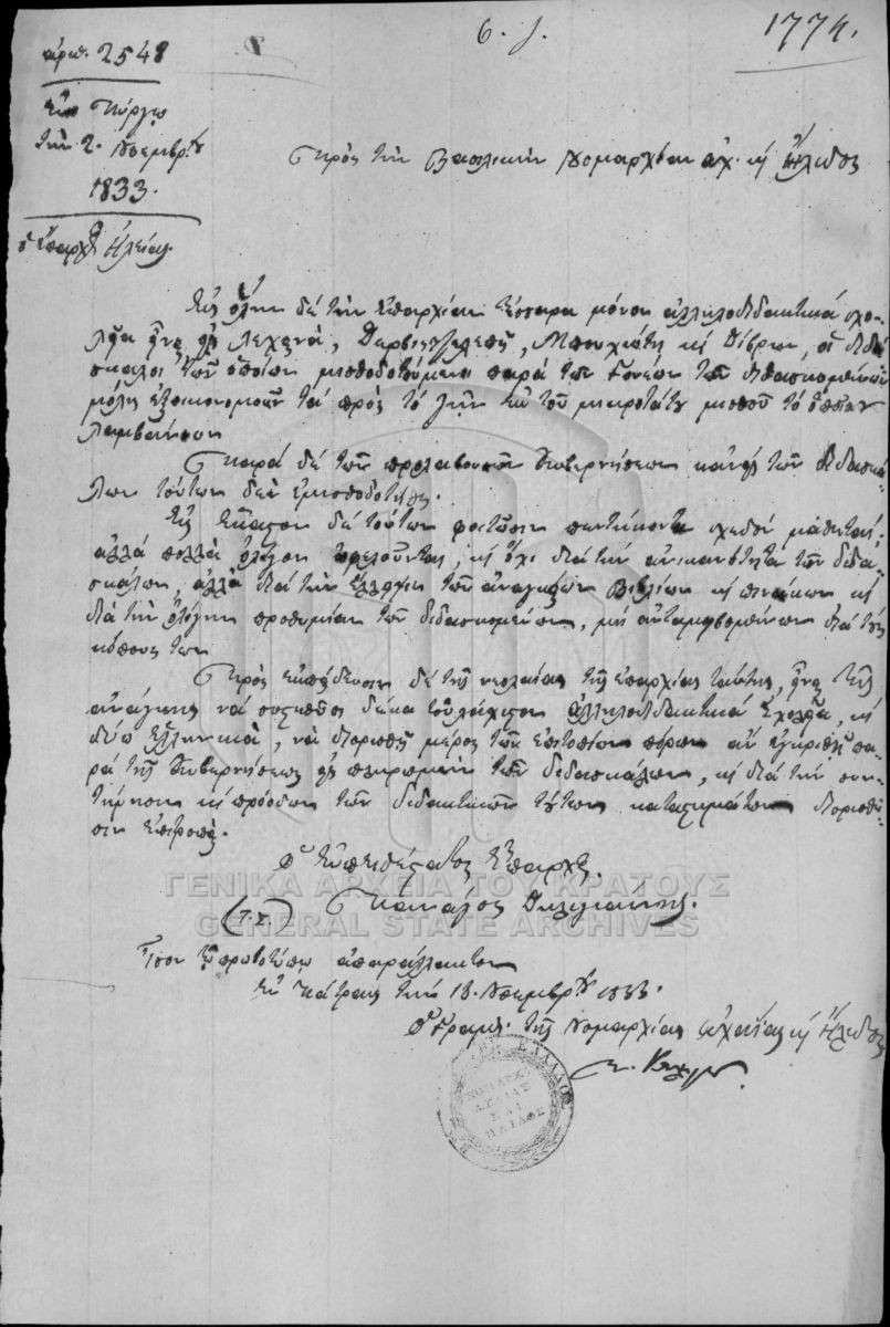 File #1535 - SECRETARIAT/MINISTRY OF ECCLESIASTICAL ISSUES AND STATE EDUCATION ARCHIVE (1833-1848)  [1833 - 1834]
