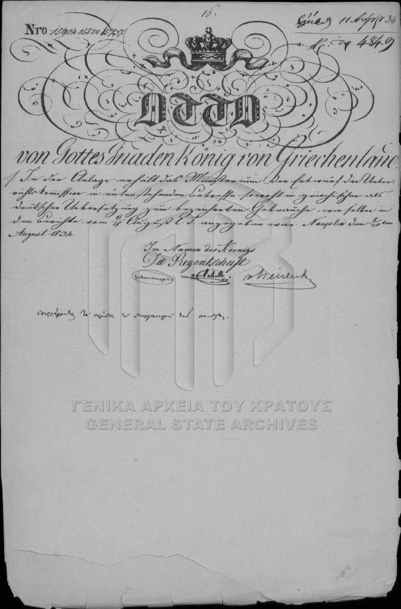 [Fonds] GRGSA-CSA_PAO013 ARCHIVES DE LA CHANCELLERIE/DU MINISTERE DES CULTES ET DE L'EDUCATION PUBLIQUE (1833-1848) - ARCHIVES DE LA CHANCELLERIE/DU MINISTERE DES CULTES ET DE L'EDUCATION PUBLIQUE (1833-1848) [1833 - 1848] Το αρχείο της Γραμματείας επί των Εκκλησιαστικών και της Δημοσίου Εκπαιδεύσεως διαρθρώνεται σε τρεις σειρές ως εξής: Ι. Σειρά των Εκκλη... |