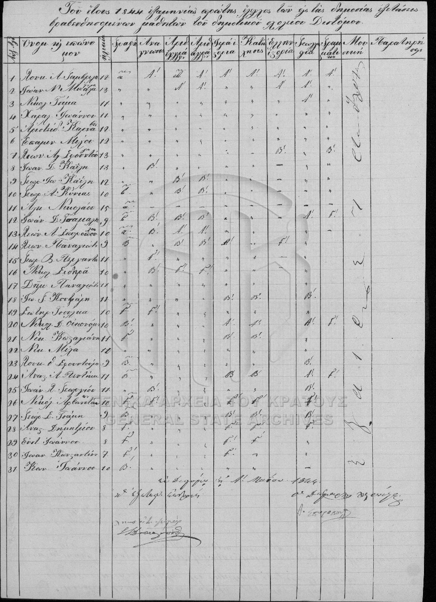 [File] GRGSA-CSA_PAO013.S02.01.F001538 File #1538 - SECRETARIAT/MINISTRY OF ECCLESIASTICAL ISSUES AND STATE EDUCATION ARCHIVE (1833-1848) [1842 - 1845] Distomo boys' elementary school: library, exams and staff salaries, staff and list. |