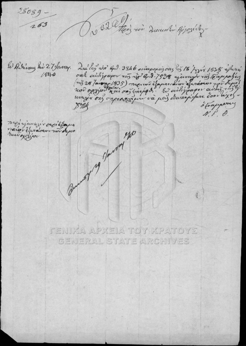 [Fonds] GRGSA-CSA_PAO013 ARCHIVES DE LA CHANCELLERIE/DU MINISTERE DES CULTES ET DE L'EDUCATION PUBLIQUE (1833-1848) - ARCHIVES DE LA CHANCELLERIE/DU MINISTERE DES CULTES ET DE L'EDUCATION PUBLIQUE (1833-1848) [1833 - 1848] Το αρχείο της Γραμματείας επί των Εκκλησιαστικών και της Δημοσίου Εκπαιδεύσεως διαρθρώνεται σε τρεις σειρές ως εξής: Ι. Σειρά των Εκκλη... |