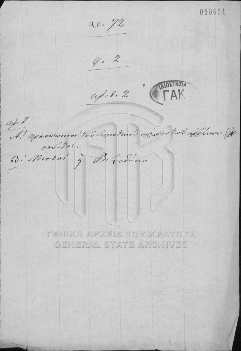 αρ.Α'. Προσωπικόν. αρ.Β'. Μισθοί του προσωπικού.