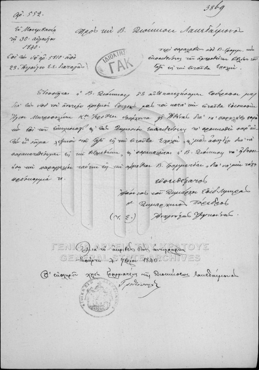 [Fichier] GRGSA-CSA_PAO013.S02.01.F001584 Fichier #1584 - ARCHIVES DE LA CHANCELLERIE/DU MINISTERE DES CULTES ET DE L'EDUCATION PUBLIQUE (1833-1848) [1840 - 1845] Épidaure de Limira, école grecque. |
