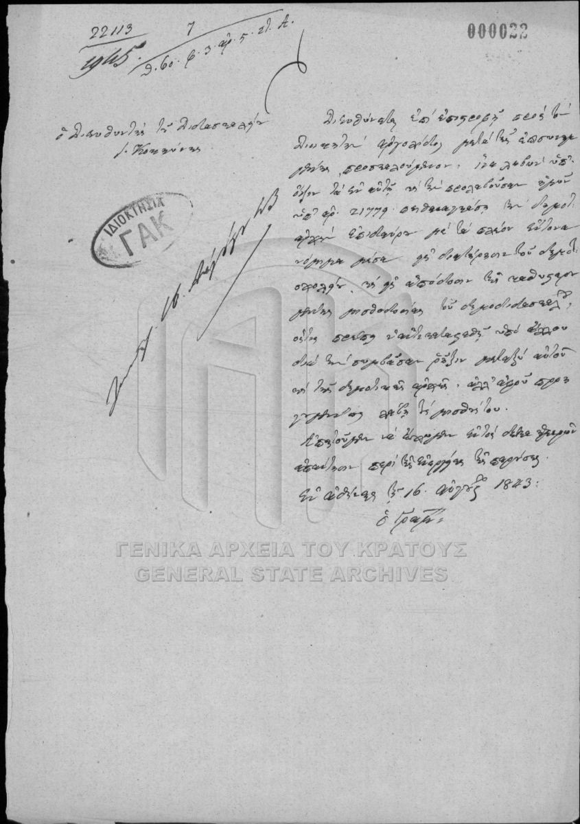 Φάκελος #1588 - Επιδαύρου Δημοτικόν Σχολείον των αρρένων  [1843 - 1844]