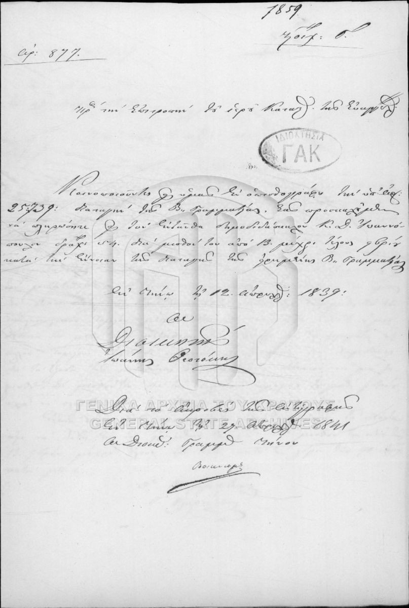 Αρχείο Γραμματείας / Υπουργείου Εκκλησιαστικών και Δημοσίου Εκπαιδεύσεως  [1833 - 1848]